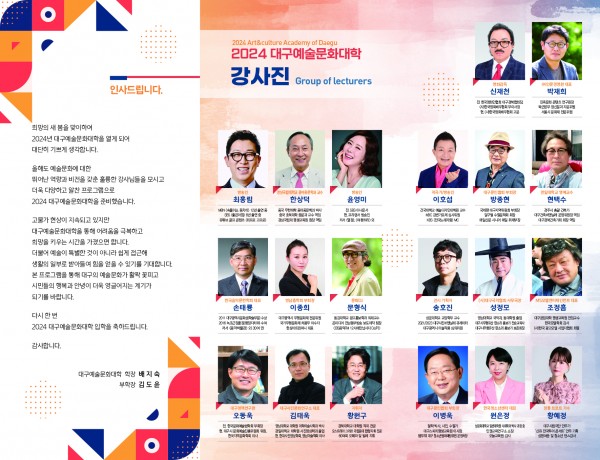 2024 대구예술문화대학 신입생 모집 페이지 정보 작성자 관리자 작성일24-03-15 11:48 댓글0건 관련링크 이전글 다음글 목록 본문 □ 접수방법 : 전화 접수 : 성함, 연락처 > 수강료 입금 >접수 완료 (입학식당일 입학원서 작성) 댓글목록 등록된 댓글이 없습니다. 이전글 다음글 목록